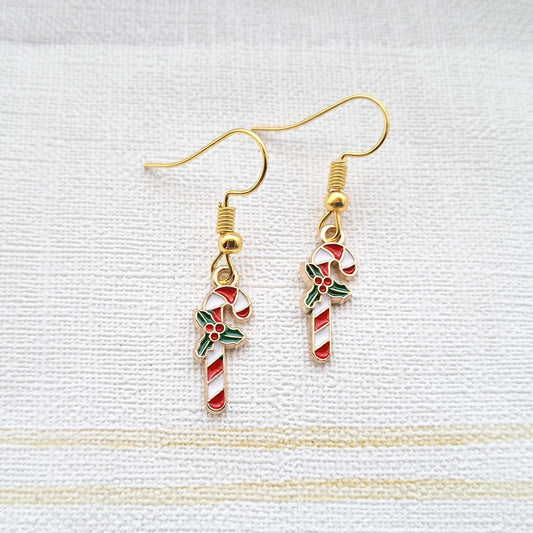 Candy cane earrings, festive christmas jewellery, stocking filler, secret santa present, novelty xmas earrings, holiday season
